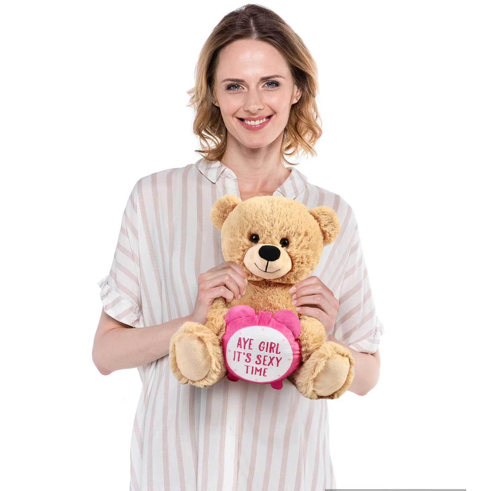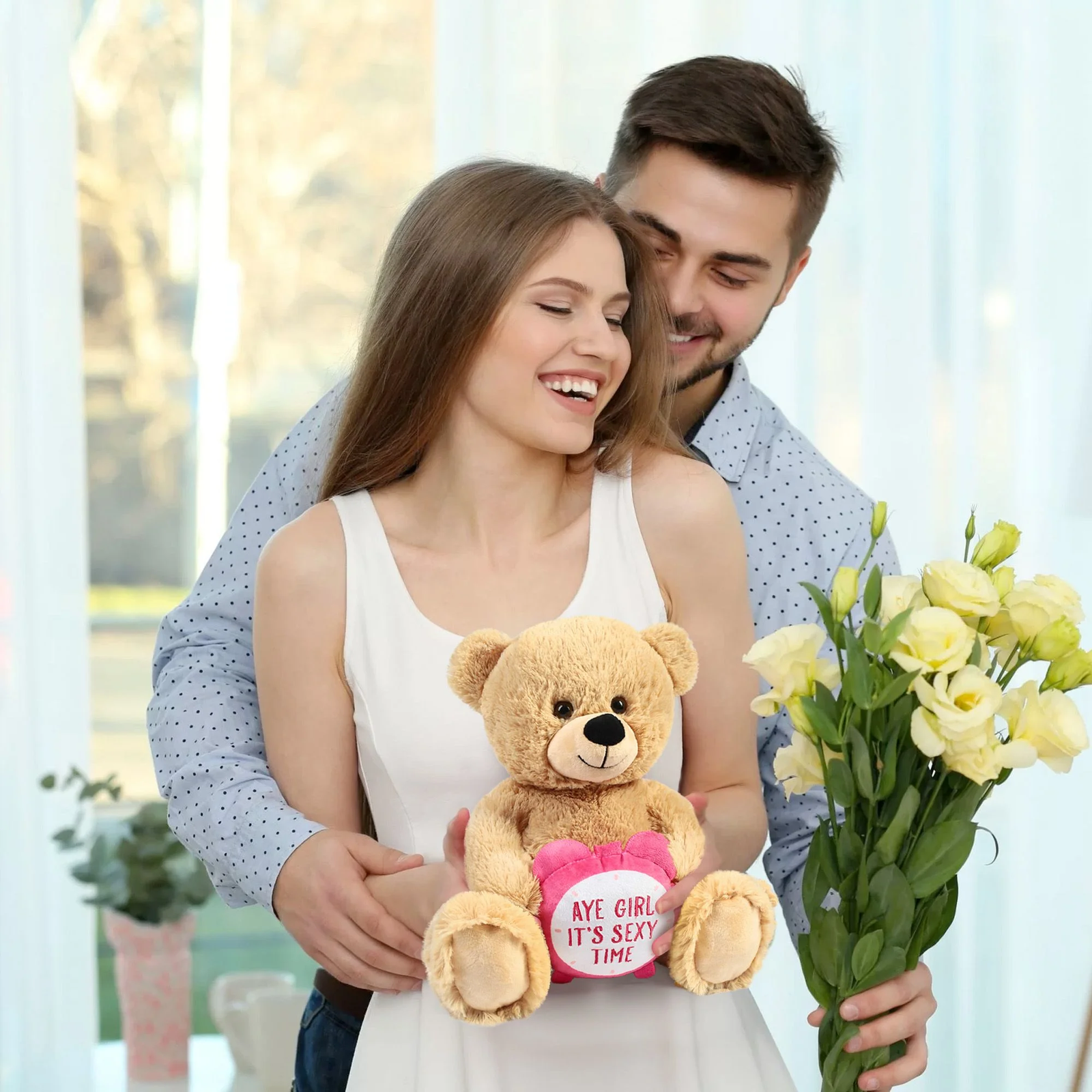 Our brown teddy bears measure 12 inches from head to toe (10 inches in a seated position). Plush teddy bear comes with stuffed Clock, Pineapple, Honey Pot, add funny embroidered words on it. These soft plush teddy bear stuffed animal toys are perfect for hugging and snuggling, resting on, and bringing smiles and comfort, perfect for themed party decoration gifts for the wife, girlfriend, husband, boyfriend, and friends. This adorable stuffed animal is also the best choice for decorating your room.