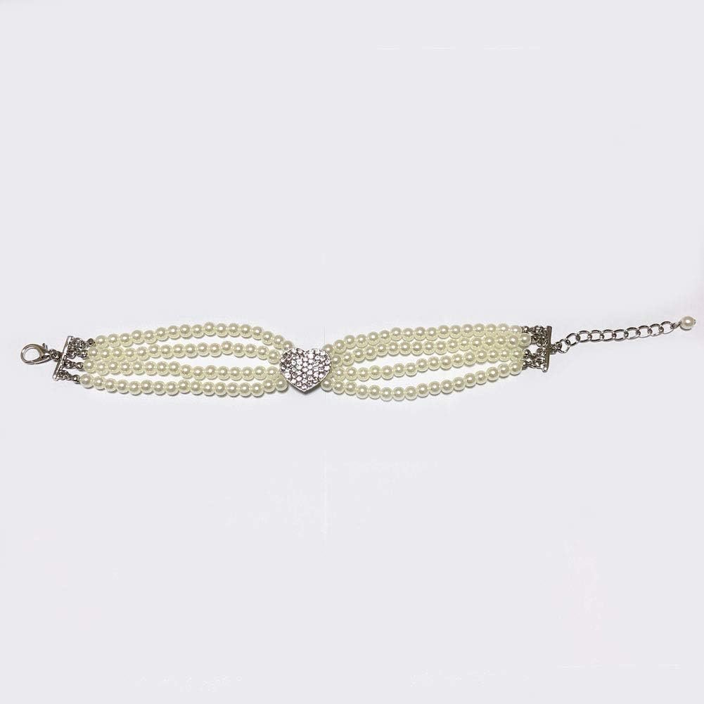 Dog Pearls Necklace Jewelry – Bling Dog Wedding Collar for Small Dogs Girl with Rhinestone Heart Charm – Teacup Puppy Chihuahua Yorkie Clothes Accessories (White Heart, 8 to 10-Inch)