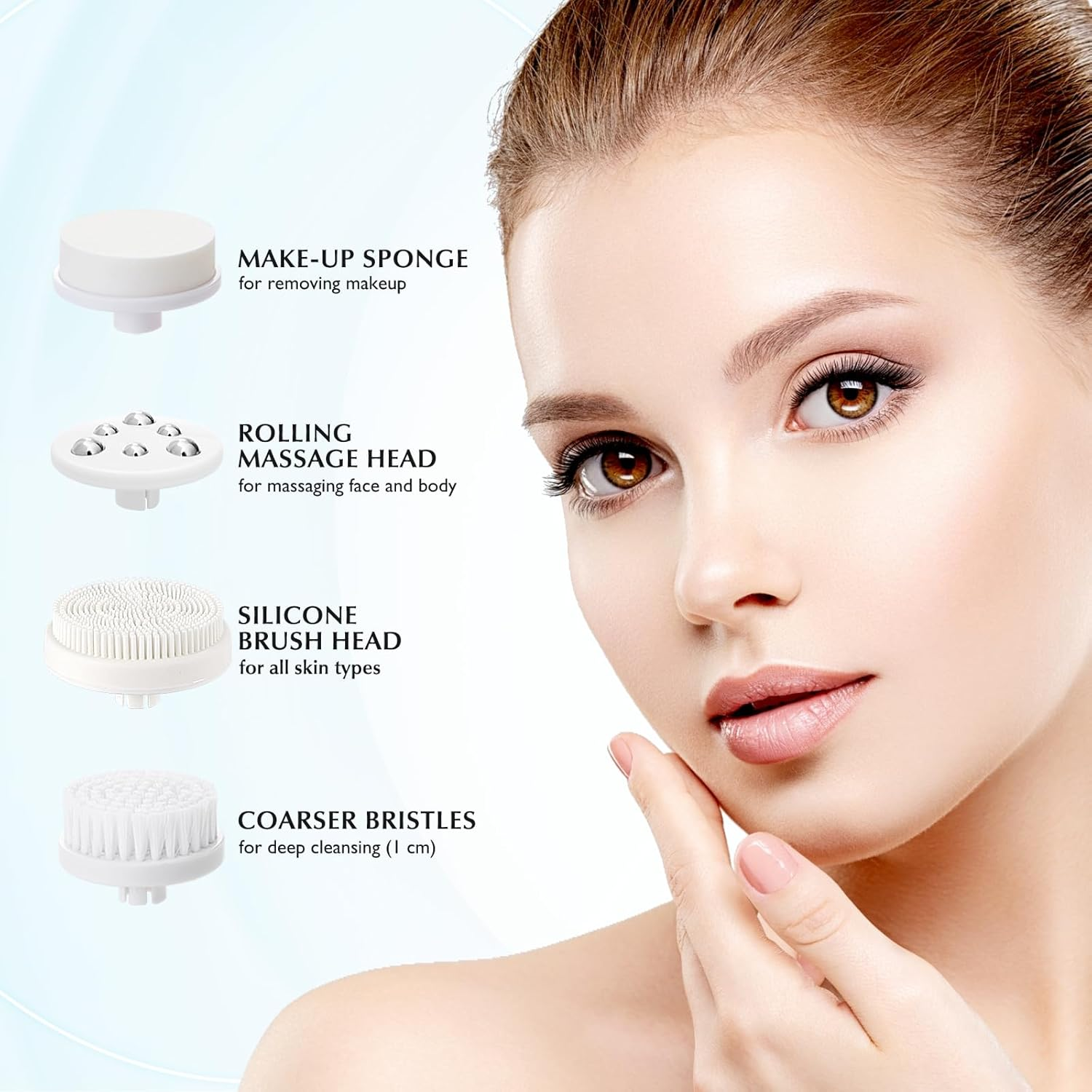 - AII IN ONE CLEANSING SYSTEM: This facial cleansing brush contains 1 bristle brush head, 1 silicone brush head, suitable for all skin types including sensitive skin, which can meet a variety of cleansing and skincare needs including clears whiteheads, clears blackheads, deep pore cleansing, makeup removal and more