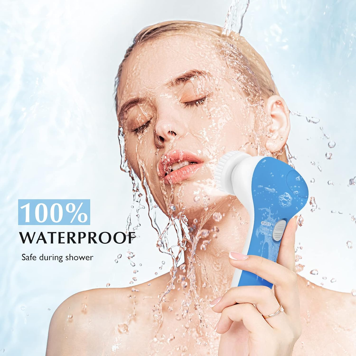 - 100% WATERPROOF AND SAFE DURING SHOWER: This facial exfoliating brush is IPX7 waterproof, making it safe to use in the shower. For the facial cleansing brush to last, we sincerely recommend that you keep the battery compartment dry and do not submerge the entire facial brush in water (Does not include 2 AA batteries)