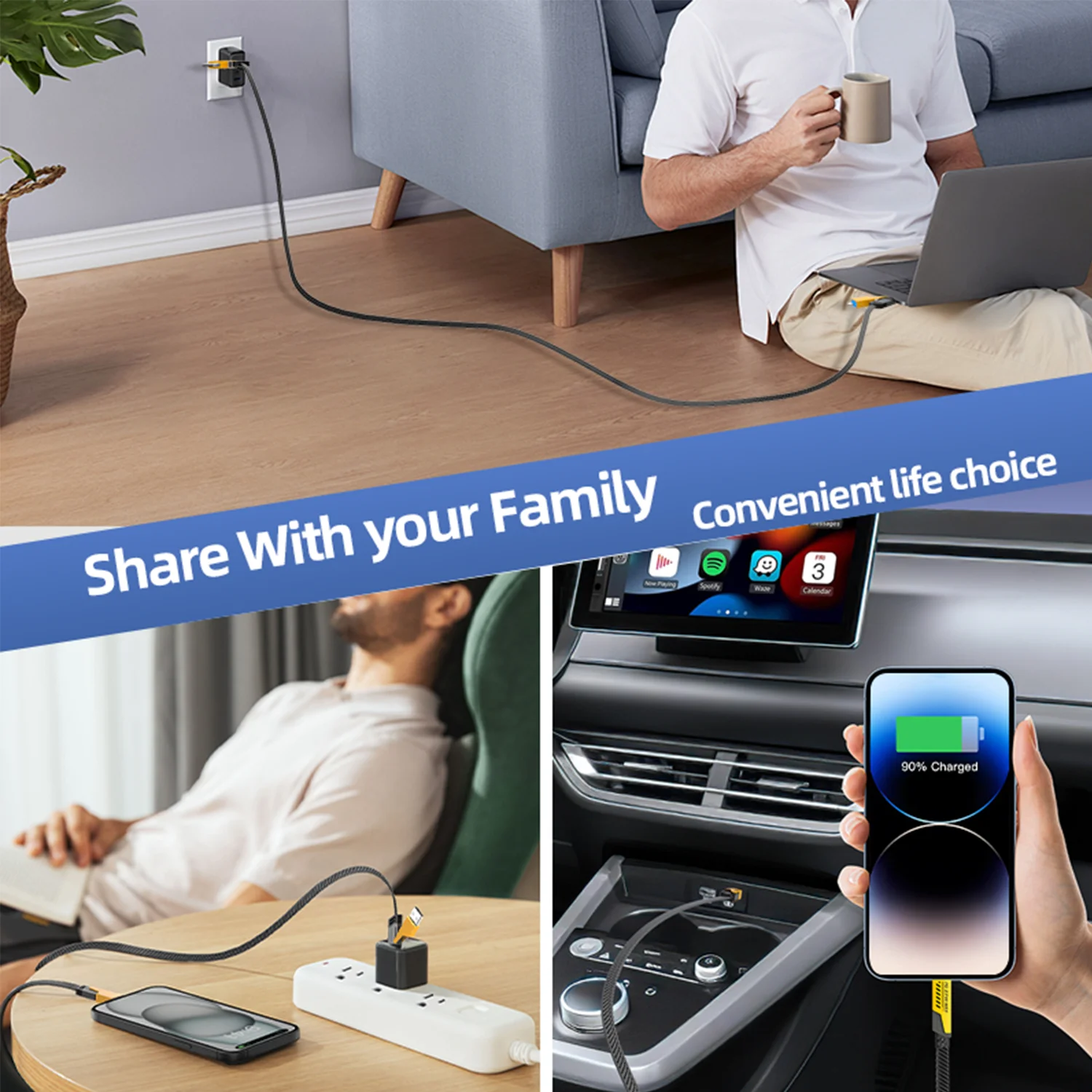 - 4 FT LENGTH: 4 ft can be used in different places, such as sofa, office, on the car, traveling and so on.